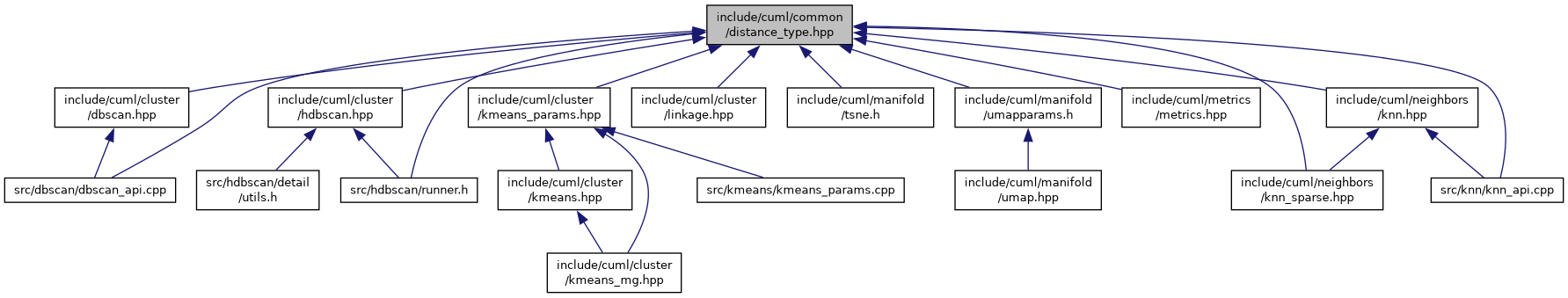 | enum class | ML::distance::DistanceType { ML::distance::L2Expanded = 0 , ML::distance::L2SqrtExpanded = 1 , ML::distance::CosineExpanded = 2 , ML::distance::L1 = 3 , ML::distance::L2Unexpanded = 4 , ML::distance::L2SqrtUnexpanded = 5 , ML::distance::InnerProduct = 6 , ML::distance::Linf = 7 , ML::distance::Canberra = 8 , ML::distance::LpUnexpanded = 9 , ML::distance::CorrelationExpanded = 10 , ML::distance::JaccardExpanded = 11 , ML::distance::HellingerExpanded = 12 , ML::distance::Haversine = 13 , ML::distance::BrayCurtis = 14 , ML::distance::JensenShannon = 15 , ML::distance::HammingUnexpanded = 16 , ML::distance::KLDivergence = 17 , ML::distance::RusselRaoExpanded = 18 , ML::distance::DiceExpanded = 19 , ML::distance::BitwiseHamming = 20 , ML::distance::Precomputed = 100 } |