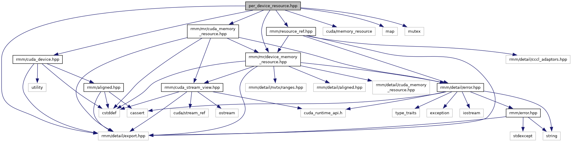 For example, given a pointer, mr, to a device_memory_resource object, calling set_per_device_resource(cuda_device_id{0}, mr) will establish a mapping between CUDA device 0 and mr such that all future calls to get_per_device_resource(cuda_device_id{0}) will return the same pointer, mr. In this way, all places that use the resource returned from get_per_device_resource for (de)allocation will use the user provided resource, mr.