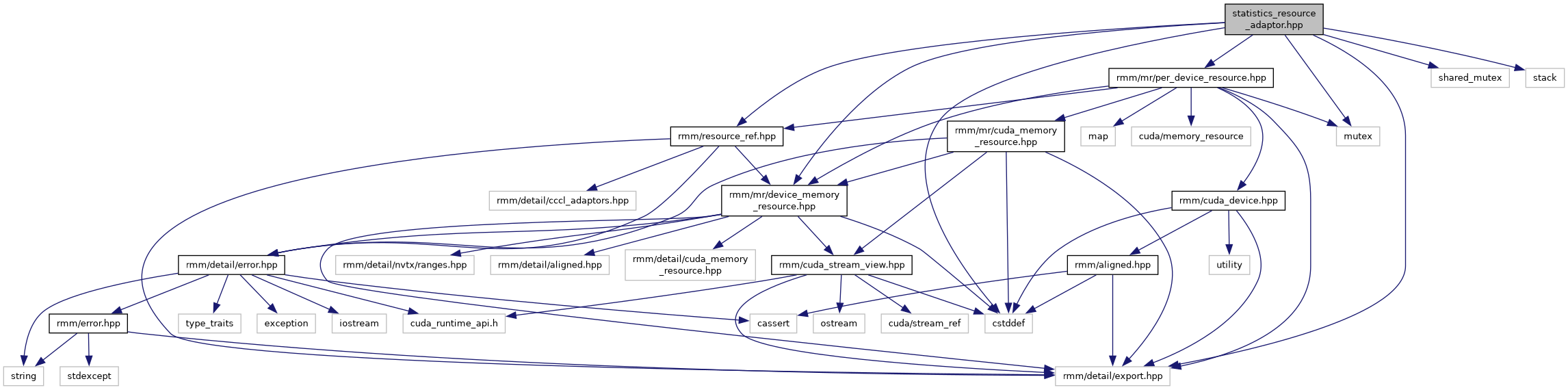 #include <rmm/detail/export.hpp>#include <rmm/mr/device_memory_resource.hpp>#include <rmm/mr/per_device_resource.hpp>#include <rmm/resource_ref.hpp>#include <cstddef>#include <mutex>#include <shared_mutex>#include <stack>